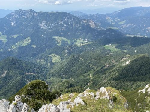 Z roba nad kočo je lep razgled proti jugu na Gornjo Savinjsko dolino in na gore nad njo.