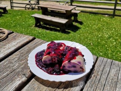 • Na voljo sta dva večja prostora s skupno 100 sedeži. Najbolj znana specialiteta Koče na Loki so zagotovo borovničevi štruklji.